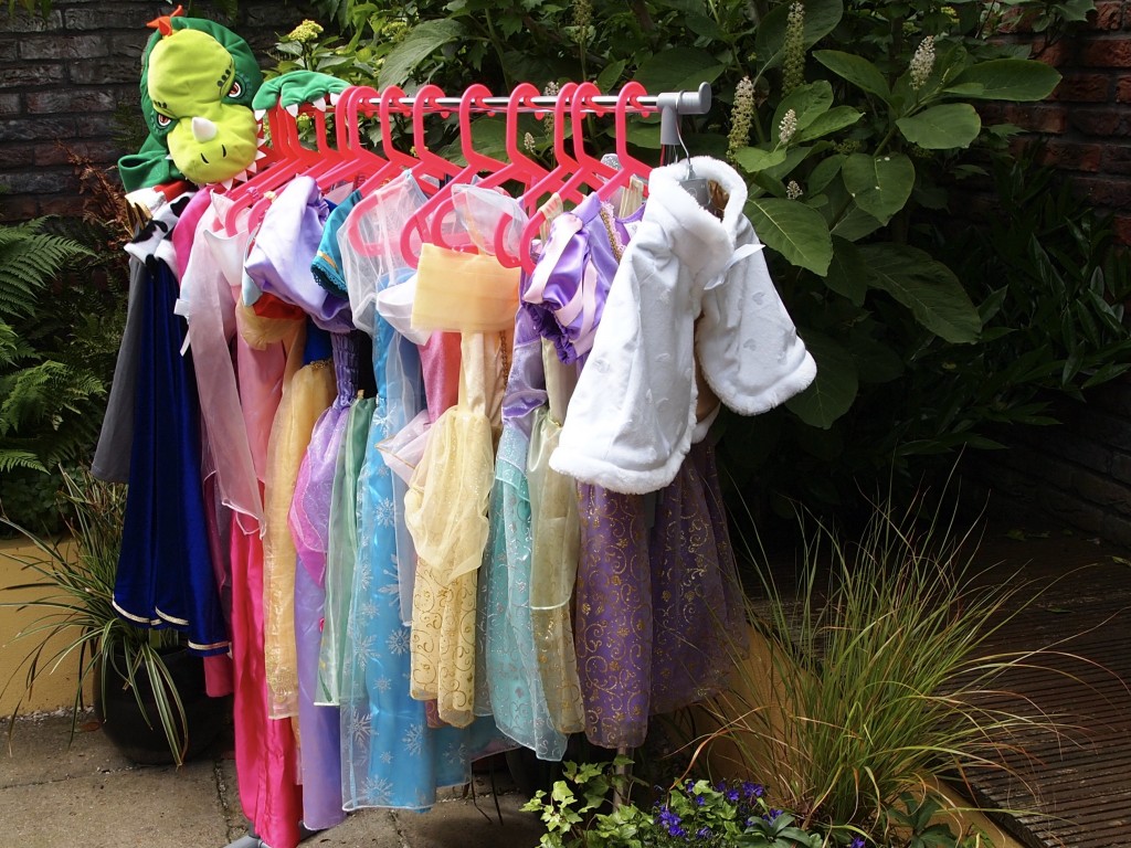 - Echte Disney prinsessenjurken op een kledingrek voor alle prinsesjes